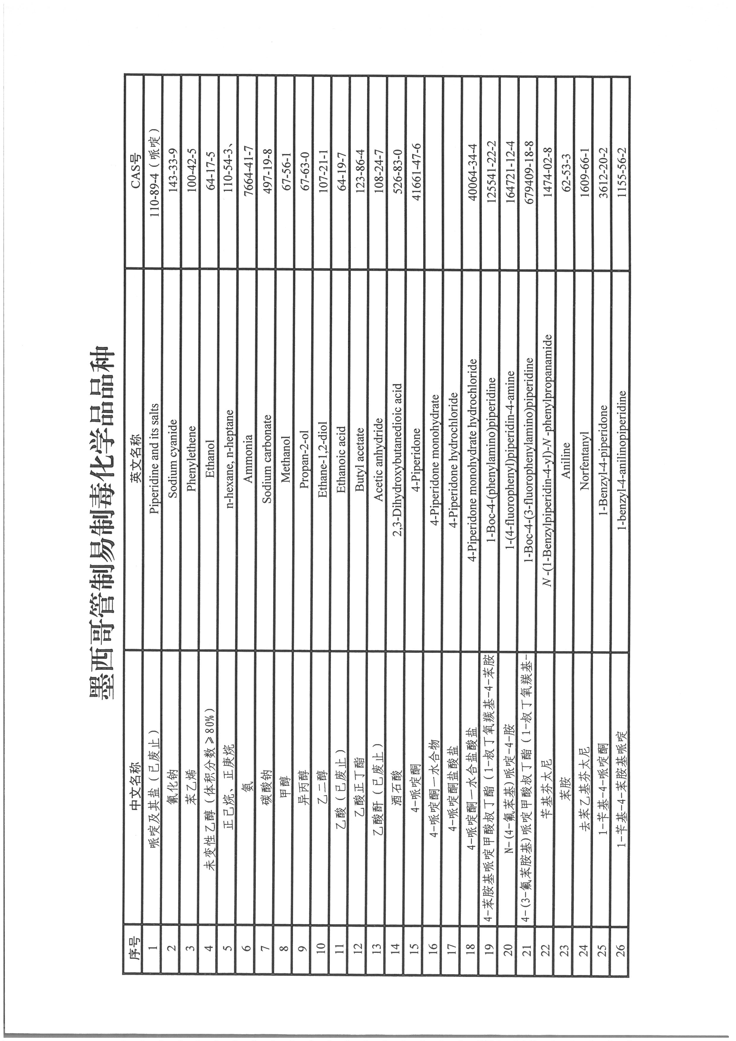 墨西哥管制易制毒化学品品种