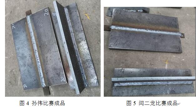 在比赛过程中,三位员工分别对碳钢板进行角焊缝以及平焊(对接)。